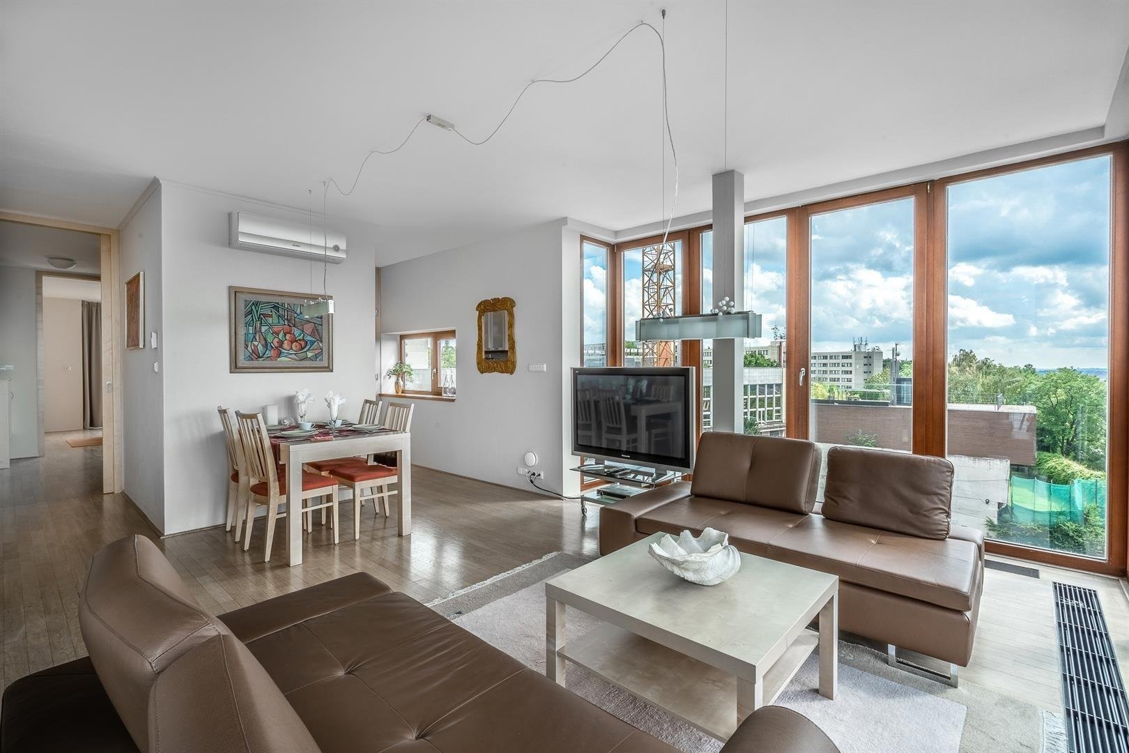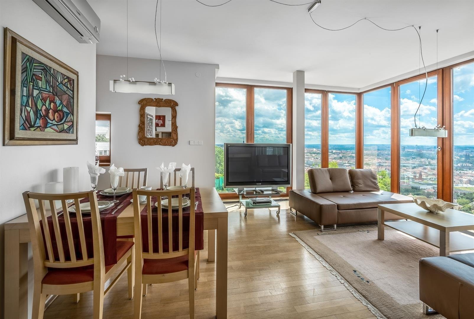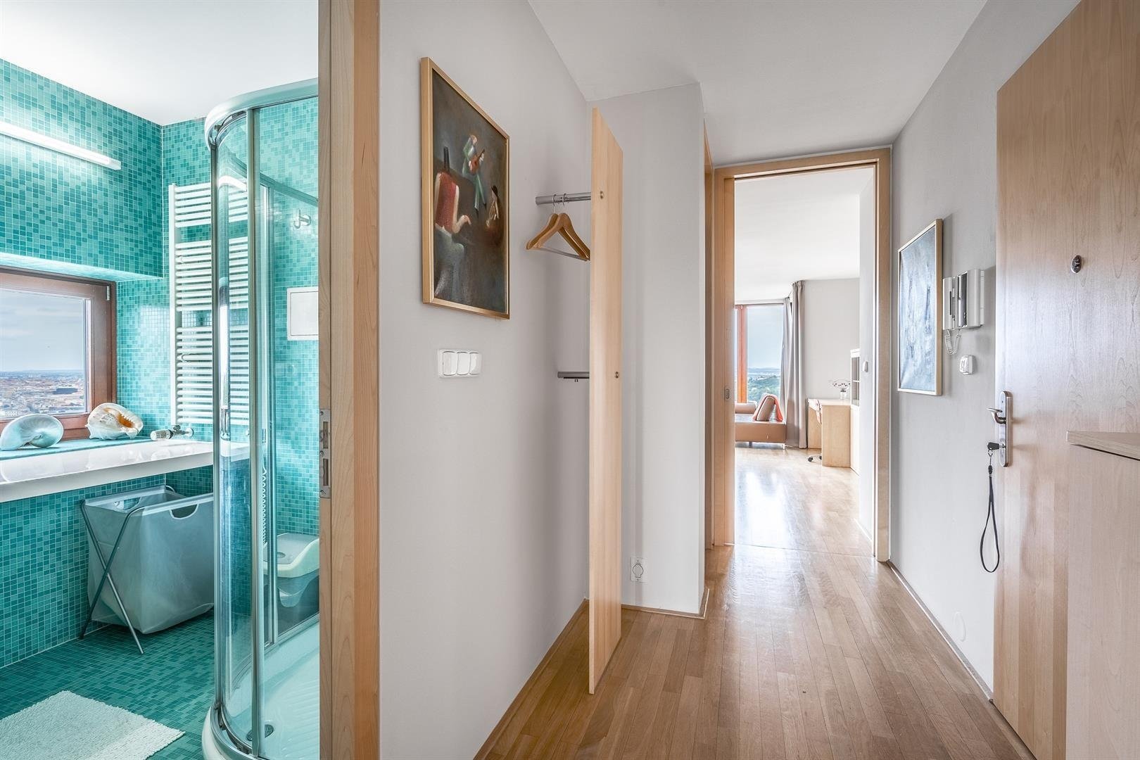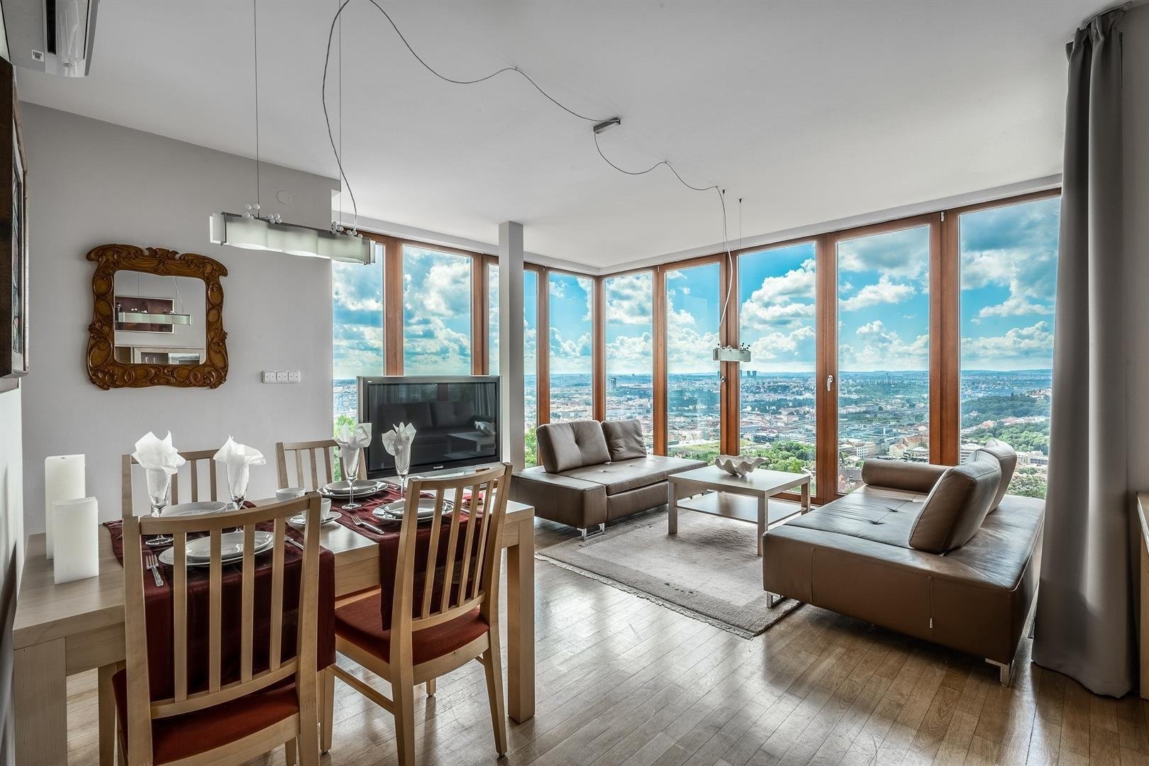 Nabízíme Vám exkluzivně k pronájmu luxusní byt 2+kk, s balkonem, garážovým stáním a okouzlujícím výhledem na celou Prahu.